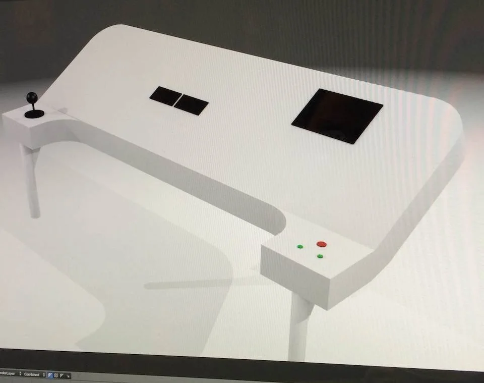 Here is a 3D rough rendering of the aluminum control panel enclosure (chair and brackets not included in image, sadly):